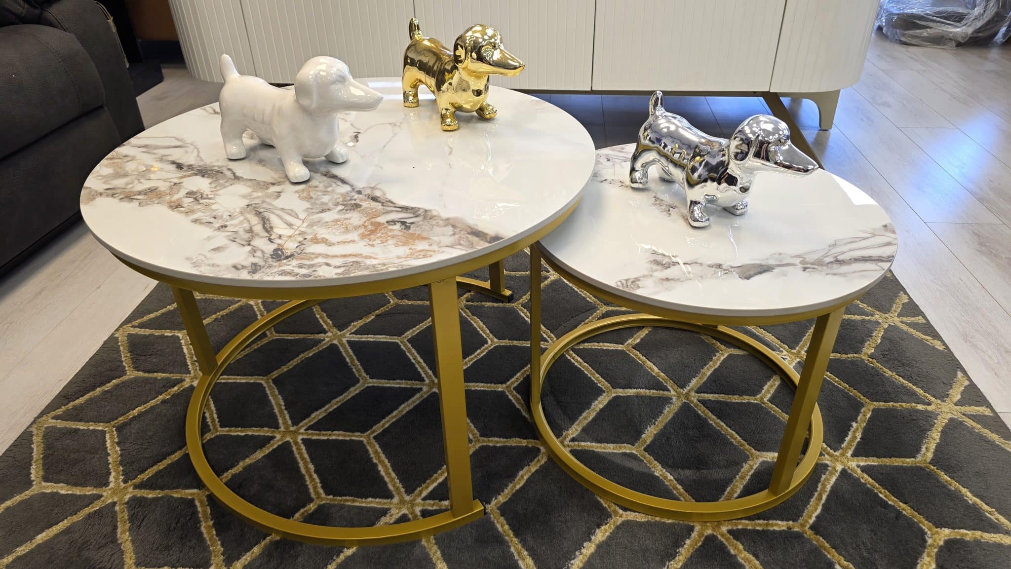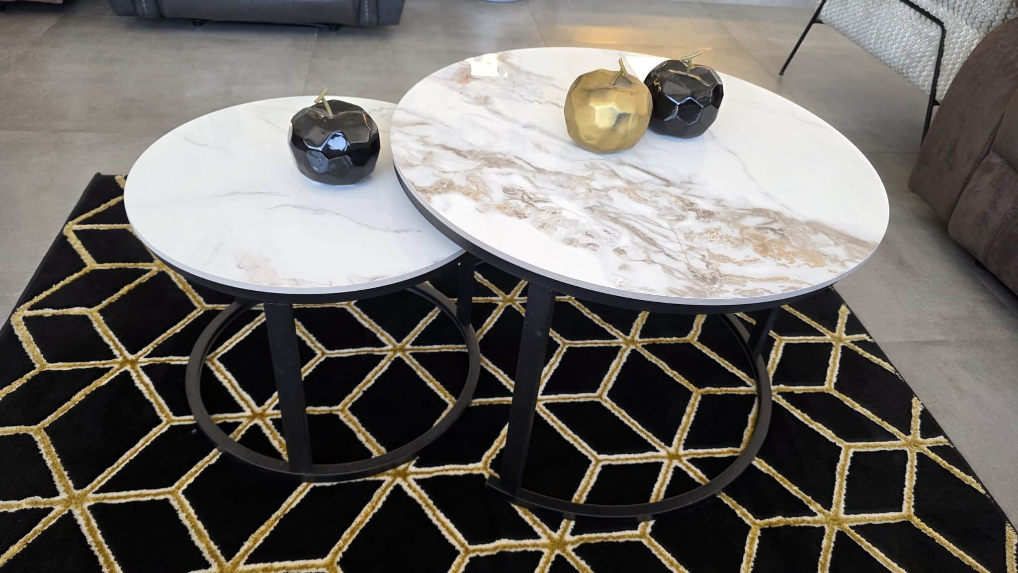 זוג שולחנות שיש עגולים  לסלון